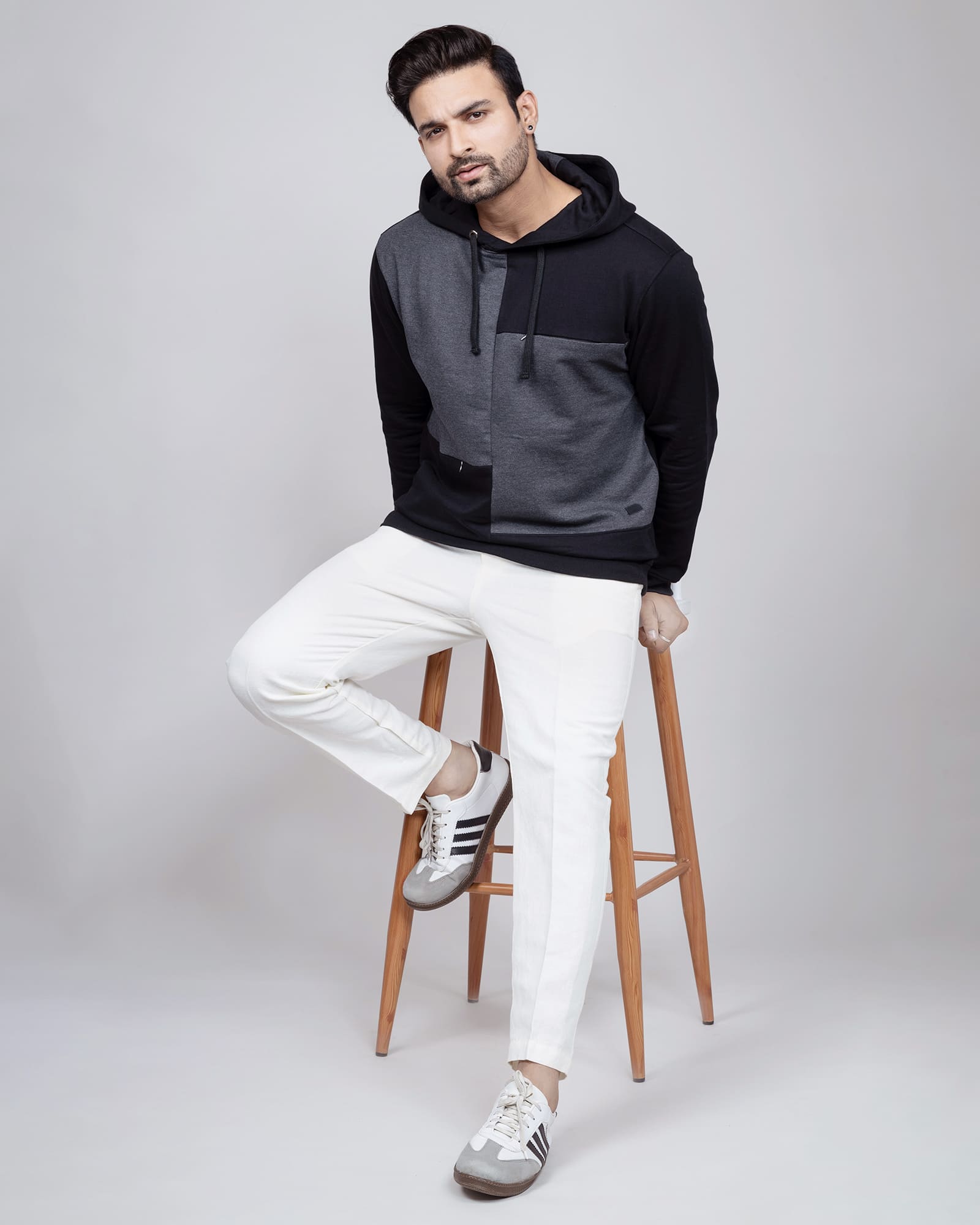 Male model is 5'10 and wearing size M Hoodie, paired with our MONO Pants.